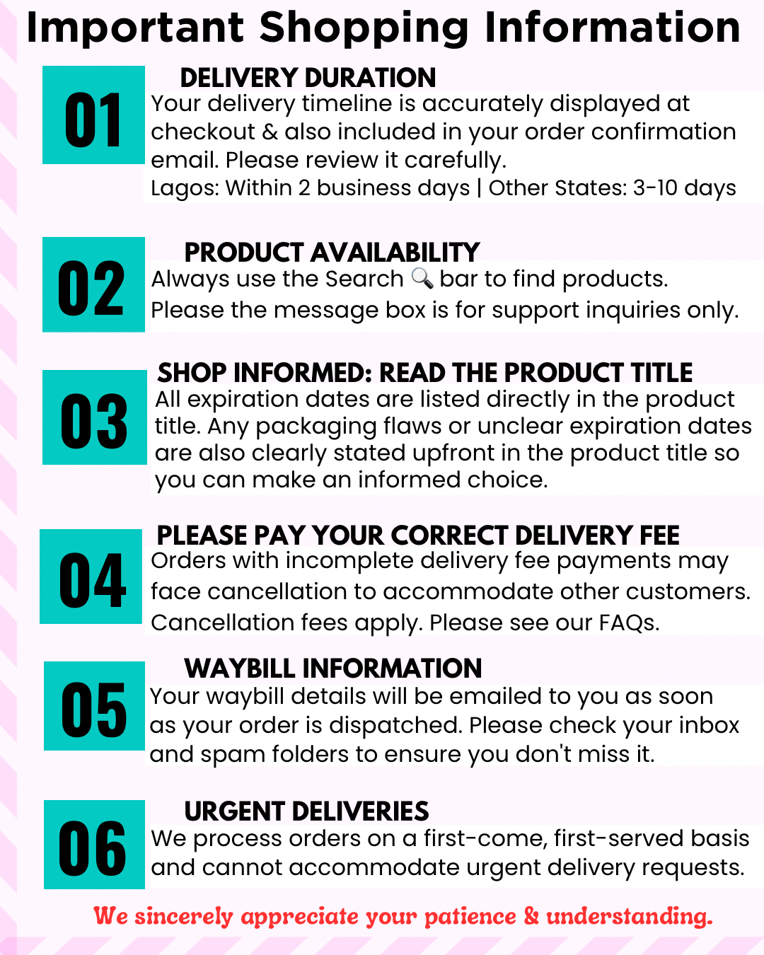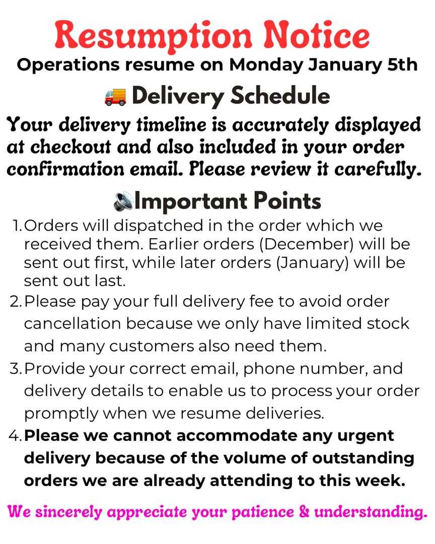 We work closely with national logistics companies to ensure timely deliveries