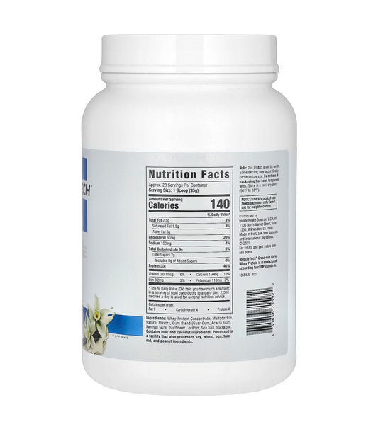 Muscletech 100% Whey Protein Concentrate Powder | 20g Protein 4.3g BCAAs | 23 Servings | Deluxe Vanilla 1.8lbs/816g Exp May/2027
