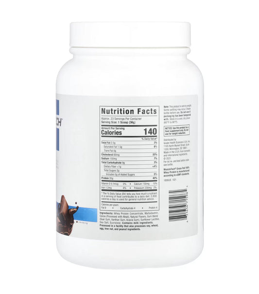 Muscletech Grass-Fed 100% Whey Protein Powder 20g Protein 4.3g BCAAs | 23 Servings | Triple Chocolate 1.8lbs/816g; Exp Oct/2026