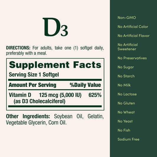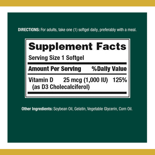 Nature's Bounty Vitamin D3 25mcg (1000iu) | Immune Support, Helps Maintain Healthy Bones & Hormones | 120 Rapid Release Softgels; Exp 05/2028