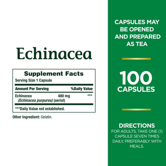 Nature's Bounty Echinacea 400mg | Supports Immune Health | 100 Capsules; Exp 01/2027