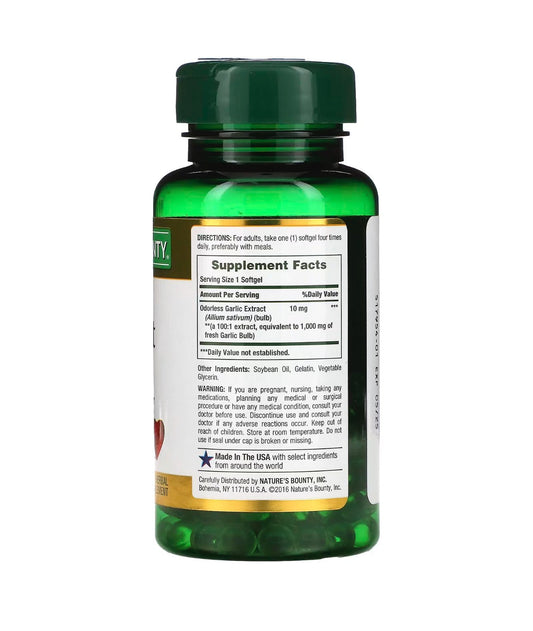 Nature's Bounty Garlic Extract 1000mg | Promotes Heart & Cardiovascular Health | Helps Maintain Cholesterol Levels | 100 Rapid Release Softgels; Exp 01/2027