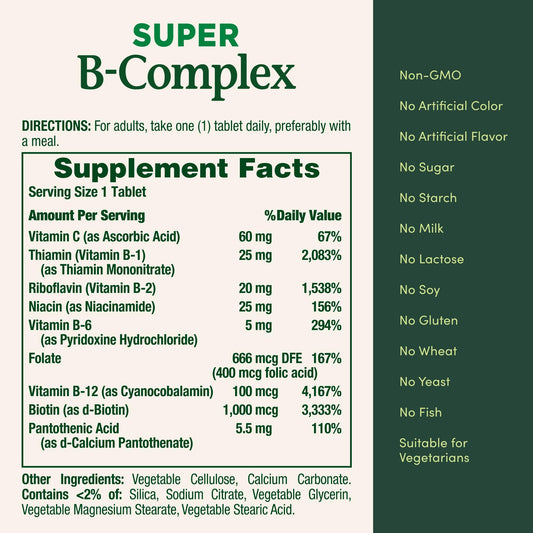 Nature's Bounty Super B Complex with Vitamin C & Folic Acid | Immune & Energy Support | 150 Coated Tablets; Exp 04/2027