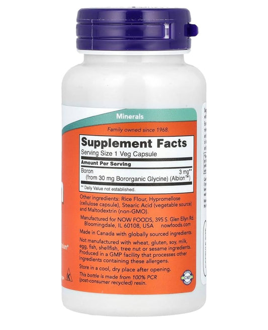 Now Boron 3mg | Albion Bororganic Glycine | Supports Bone Strength and Structure | 100 Capsules; Exp 01/2030