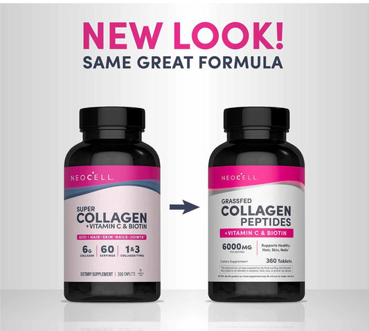 NeoCell Grassfed Collagen + Vitamin C + Biotin | For Glowing Skin | Formerly Super Collagen | Supports Healthy Skin, Hair, Nails & Joints | 360 Tablets; Exp 07/2028 - New Look