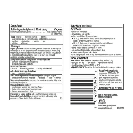 Pepto Bismol Bismuth Subsalicylate Liquid, Indigestion and Anti-Diarrhea Stomach Relief | Fast Relief for Nausea, Heartburn, Indigestion, Upset Stomach, and Diarrhea | Cherry Flavor ~ 8oz/236ml; Exp 04/2026