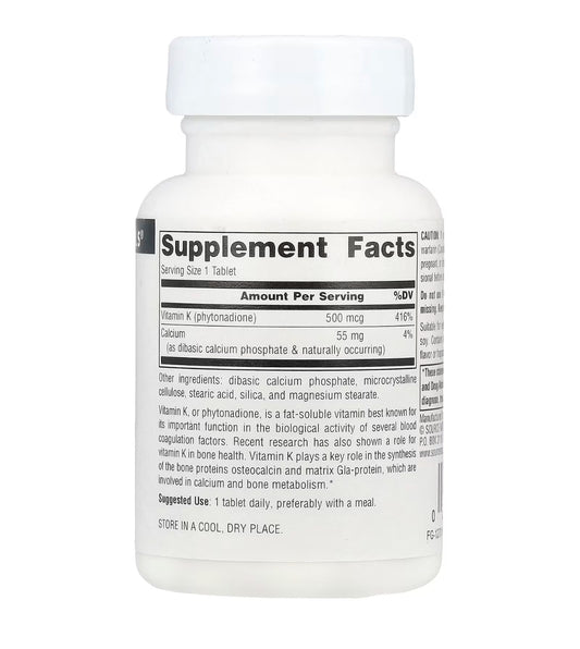 Source Naturals Vitamin K 500mcg | Phylloquinone | Supports Bone and Blood Health | 100 Tablets; Exp 10/2028