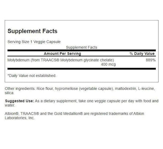 Swanson Albion Chelated Molybdenum 400 mcg | Metabolic Support | 60 Capsules; Exp 03/2028