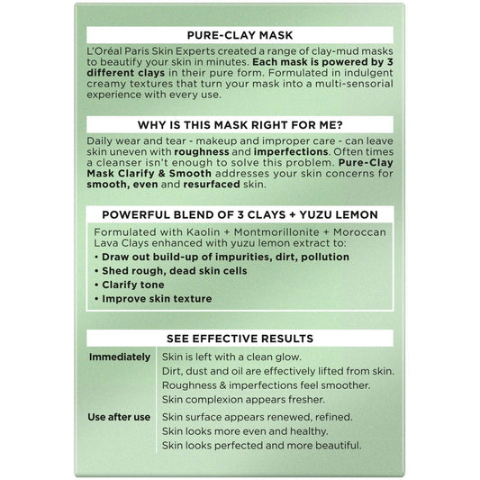 L'Oreal Pure Clay Face Mask with Yuzu Lemon | for Rough Skin to Clarify & Smooth | Clay Mask 1.7oz(48g)