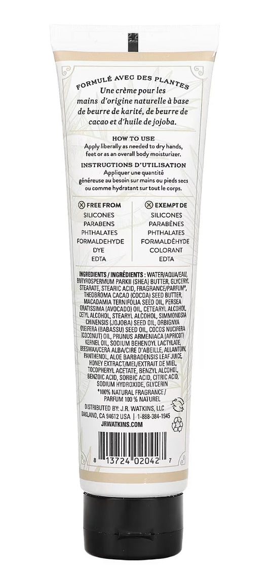 J.R. Watkins Natural Moisturizing Hand Cream | Formulated with Plants | Coconut & Honey, 3.3oz (95g)