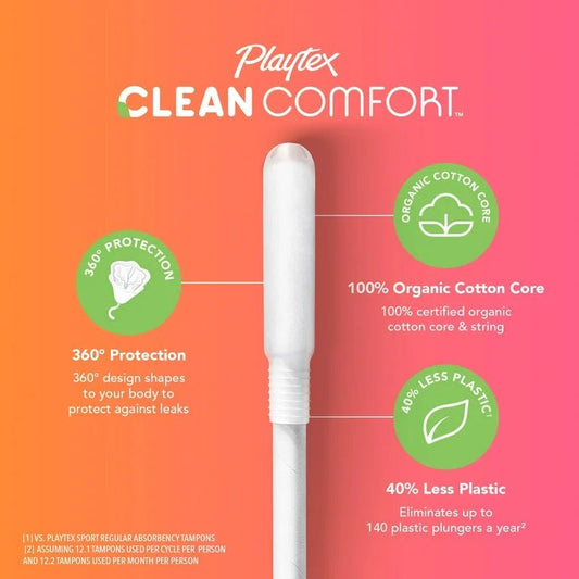 Playtex Clean Comfort™ Organic Cotton Core Tampons - Regular Absorbency - 30 Regular Tampons