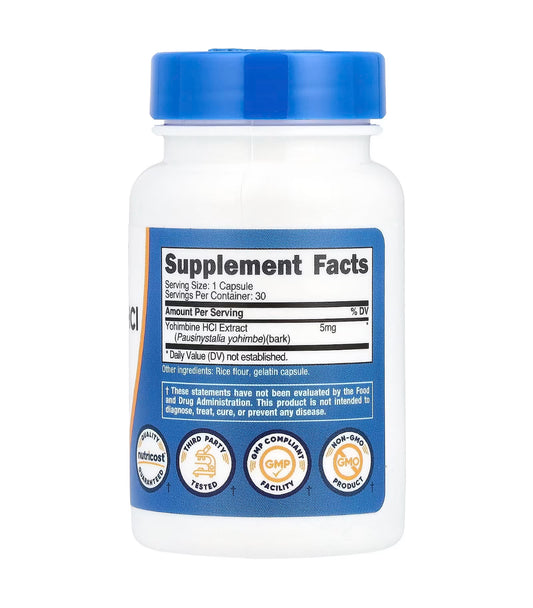 Nutricost Yohimbine HCL 5mg | Boosts Libido & Sexual Performance in Men | 30 Capsules; Exp 07/2027