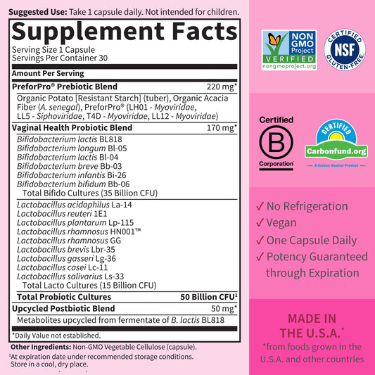 Garden of Life Dr Formulated 3-in-1 Complete Prebiotics, Postbiotics & Probiotics for Women, PRE + PRO + POSTBIOTIC 50 Billion CFU | Supports Women’s Digestive, Immune & Vaginal Health | 30 Capsules; Exp 03/2028