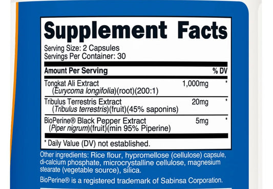 Nutricost Tongkat Ali Complex 500mg with Tribulus Terrestris & Bioperine Extract | Supports Sexual Drive and Libido | Enhances Energy, Endurance and Stamina | 60 Capsules; Exp 07/2027