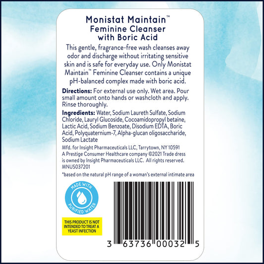 Monistat Boric Acid Feminine Cleanser, Fragrance Free Vagina Wash, 10 Fl Oz