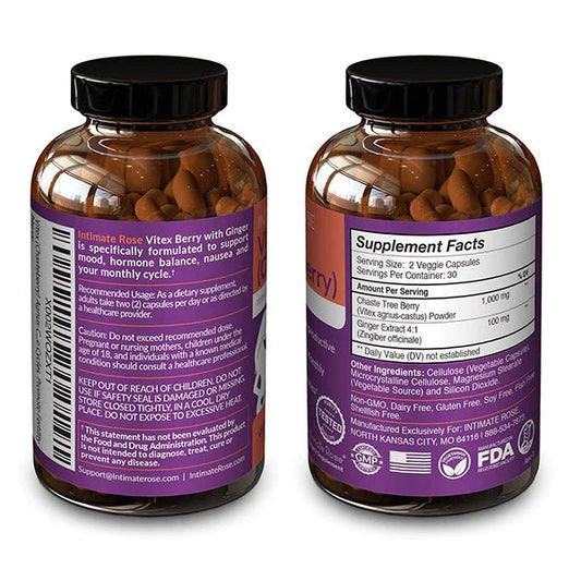 Intimate Rose Vitex (Chasteberry) with Ginger | Ovarian & Reproductive Support | Regulates Ovulation & Monthly Cycle | 60 Capsules; Exp 08/2027