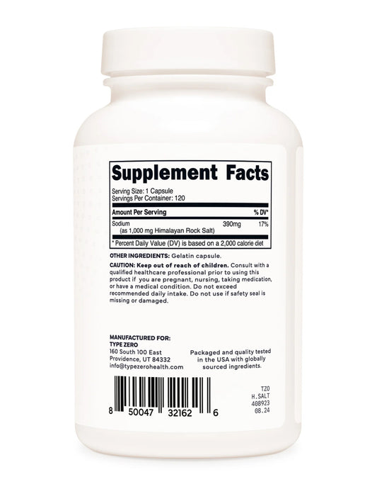 Type-Zero Pink Himalayan Salt | 120 Capsules; Exp 08/2027