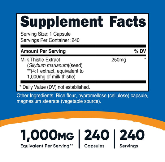 Nutricost Milk Thistle 1,000mg (Silymarin) | Supports Healthy Liver Function | Detoxification Support | ๐๐๐ ๐๐๐ฉ๐ฌ๐ฎ๐ฅ๐๐ฌ; Exp 05/2028