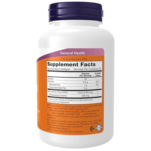 NOW Non-GMO Soy Lecithin 1200 mg | With Naturally occurring Phosphatidyl Choline | Supports Brain & Nerve Function | Nervous System Support | 100 Softgels; Exp 01/2029