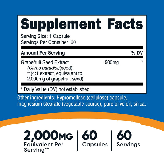 Nutricost Grapefruit Seed Extract 2000mg | Promotes the Balance of Intestinal Micro Flora | Supports Healthy GI Function & Comfort. 60 Capsules; Exp 12/2027