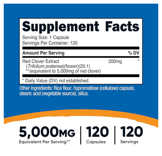 Nutricost Red Clover Blossoms Extract 5000mg | Eases Menopausal Symptoms | Improves Bone Density & Heart Health in Menopausal Women | Thins Mucus & Calms Respiratory Irritation | 120 Capsules, Exp 05/2028