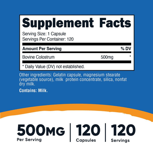 Nutricost Colostrum 500mg | Bovine Colostrum | Similar to Miracle Moo | 120 Servings | Boosts Immunity | Improves Gut Health | 120 Capsules; Exp 05/2027