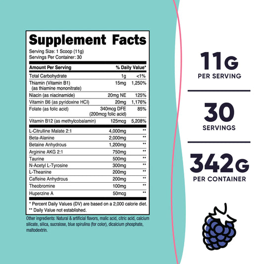 Nutricost Women Pre-Workout Complex With Thiamine, Niacin, B6, Vitamin B12, Folate, Taurine | Boost Energy | Increase Exercise Intensity | Increase Endurance | Blue Raspberry ~ 12oz/342g; Exp 12/2026