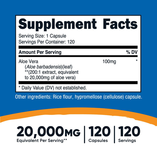 Nutricost Aloe Vera 20,000mg | 120 Servings | Supports Digestive Health | Supports the Body's Healing Process | 120 Capsules; Exp 10/2027