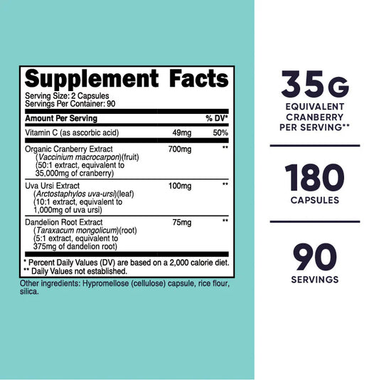 Nutricost's Cranberry Extract for Women 35,000mg | with Vitamin C, Uva Ursi & Dandelion Root Extract | 180 Capsules; Exp 09/2027