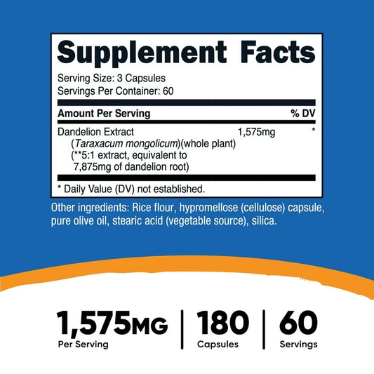 Nutricost Dandelion Extract | 525mg per Capsule | Supports Healthy Liver Function | 180 Capsules, Exp 06/2027