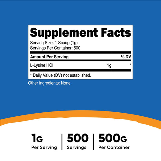 Nutricost L-Lysine 1000mg | Pure L-Lysine HCL Powder | 500 Servings | Supports Immune Function | Healthy Skin and Lips | 500g(1.1lb); Exp 09/2027