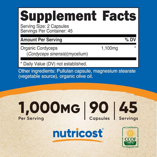 Nutricost Cordyceps Mushroom 1,100mg | 550 mg per Capsule | Reduces Fatigue, Boost Strength & Increases Sex Drive | 90 Capsules, Exp 06/2027