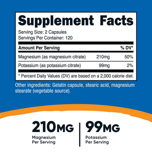 Nutricost Potassium 99mg + Magnesium Citrate 210mg - 240 Capsules; Exp 10/2027