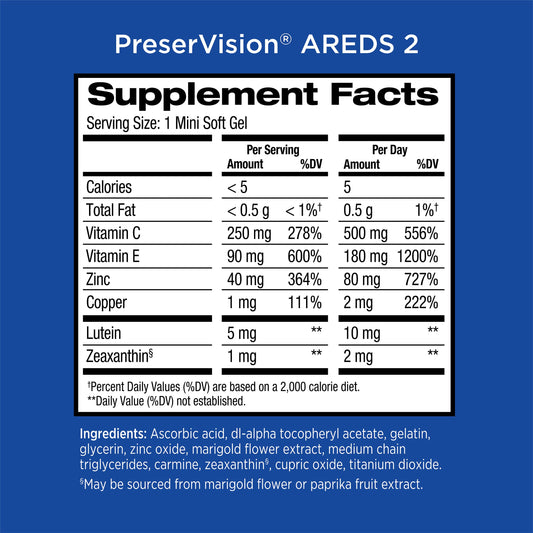 PreserVision AREDS 2 (By Bausch + Lomb) | Eye Vitamin & Mineral Supplement | 60 Day Supply | Contains Lutein, Vitamin C, Zeaxanthin, Copper, Zinc & Vitamin E | 120 Mini Softgels Exp 11/2025