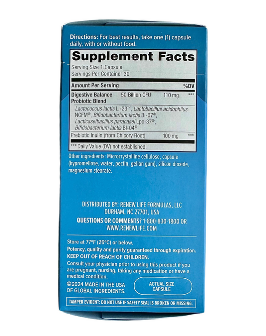 RenewLife Digestive Probiotic 50 Billion CFUs | Supports Immune, Digestive & Respiratory Health | 30 Vegetarian Capsules Exp 07/2026