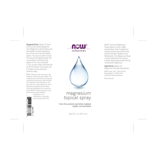 NOW Magnesium Topical Spray | Magnesium Chloride | Highly Concentrated, 8 fl.oz/237ml Exp 08/2029