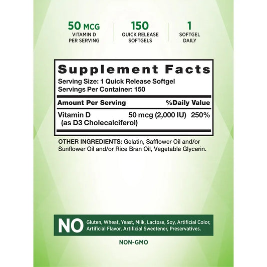 Nature's Truth Vitamin D3 2000iu (50 mcg) | High Potency | Supports Immune System, Hormone Health, Bone & Joint Health | 150 Softgels Exp 09/2025
