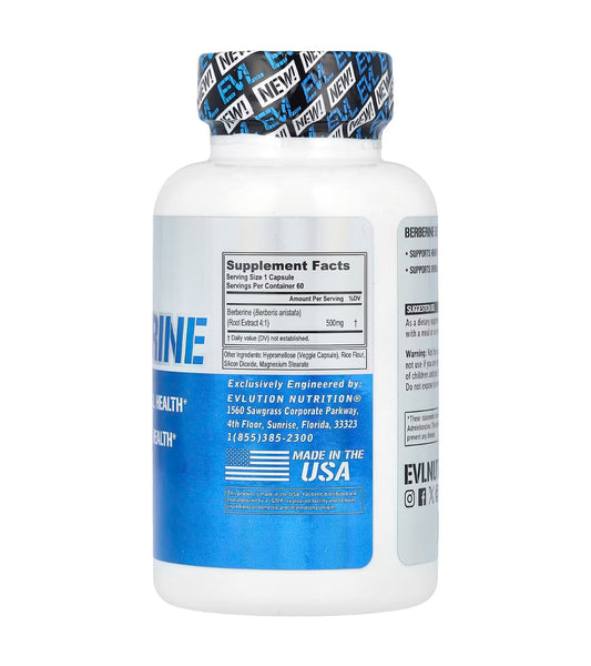 EVL Berberine 500mg | 60 Day Supply | Supports Overall Health & Heart Health | Help Maintain Healthy Cholesterol, Triglyceride & Blood Glucose Levels | 60 Capsules; Exp 12/2026