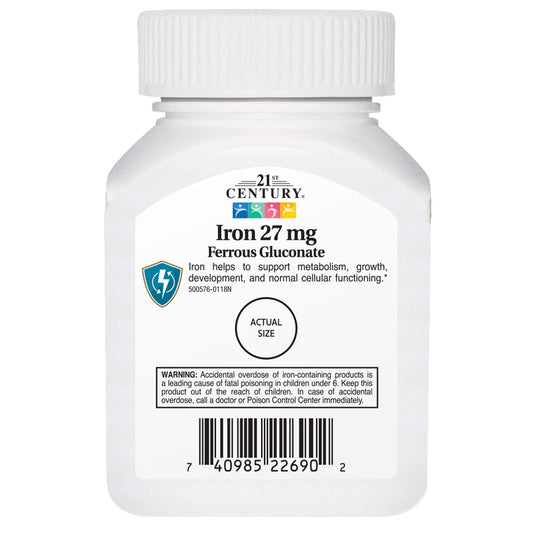 21st Century Iron 27mg, Ferrous Gluconate | 110 Tablets Exp 02/2027