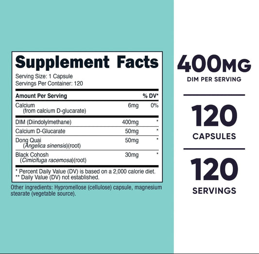Nutricost DIM (Diindolyl-methane) 400mg | Plus Dong Quai, Calcium and Black Cohosh | 120 Capsules; Exp 05/2027
