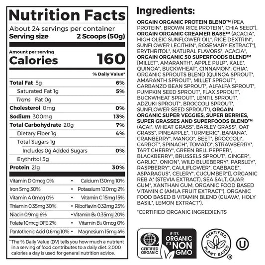 Orgain Organic Plant-Based Protein Powder with 50 Superfoods + Prebiotic | 21g Plant Protein | 24 Servings | Vanilla Bean Flavored , 2.7Lb (1.22kg); Exp 03/2026