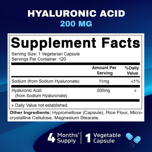 Vitamatic Hyaluronic Acid 200mg High Potency | Supports Healthy Connective Tissue and Joints | Promote Youthful Healthy Skin - 120 Capsules Exp 02/2028