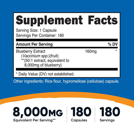 Nutricost Blueberry Extract 8000mg Extra Strength | 160mg 50:1 Extract | 180 Capsules Exp 05/2027