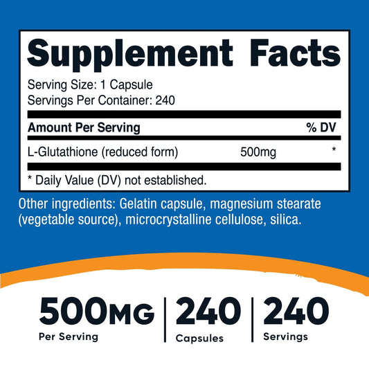 Nutricost Glutathione 500mg | 240 Servings | Antioxidant | 240 Capsules; Exp 7/2027