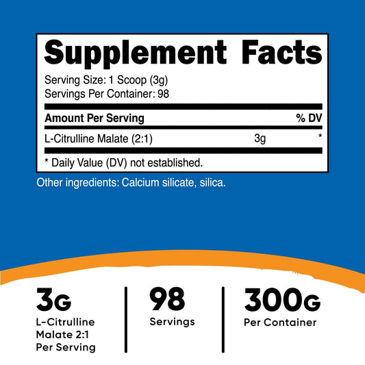 Nutricost L-Citrulline Malate 3g Powder | 98 Servings | Supports Protein Metabolism | Healthy Immune System Function | 10.7oz (300g); Exp 05/2027