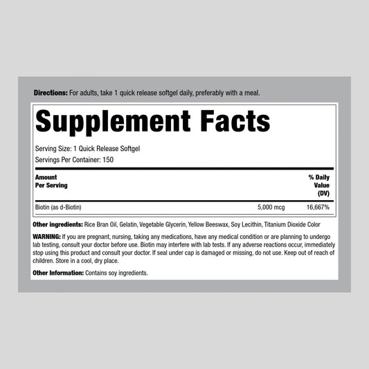 PipingRock Biotin 5000mcg | Highly Absorbable | 150 Quick Release Softgels; Exp 04/2027