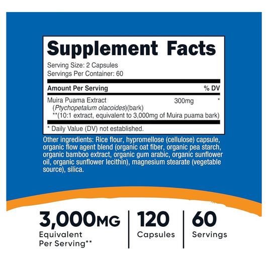 Nutricost Muira Puama Extract 3,000mg Equivalent | Sexual Tonic For Men & Women | Enhances Sexual Virility & Boosts Performance | 120 Capsules; Exp 07/2028
