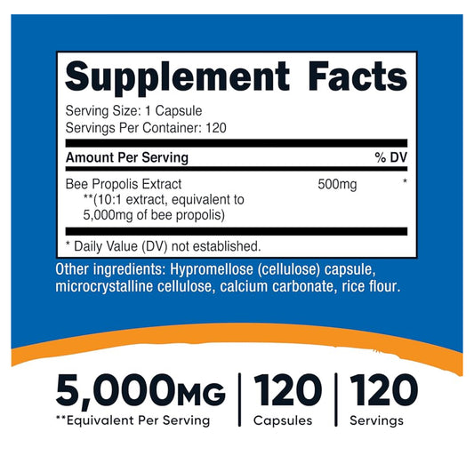 Nutricost Bee Propolis 10:1 Extract 5,000mg Equivalent | Helps Support The Body's Natural Defenses, Upper Respiratory Health & Microbial Balance | 120 Capsules; Exp 04/2028