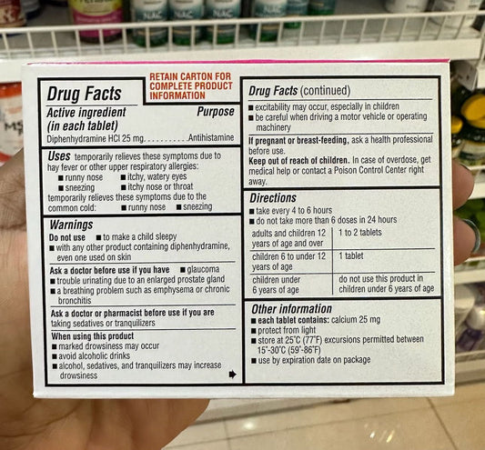 DG Health Allergy Relief Diphenhydramine HCL 25mg Antihistamine | Similar to Benadryl Allergy Ultratab Tablets | 24 Tablets; Exp 06/2026