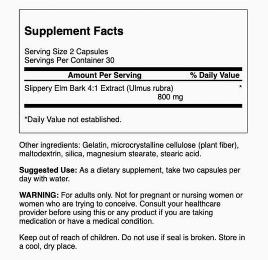 Swanson Slippery Elm Bark 400mg per Capsule | Helps Coat & Soothe Gastrointestinal (GI) Tract | Helps with Acid Reflux | 60 Capsules; Exp 08/2026